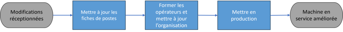 À l'occasion de la remise en service de la machine après modification, une révision des rôles a été menée pour formaliser les périmètres d'intervention de chaque acteur (opérateurs de ligne, techniciens de maintenance, responsables de production, etc.).